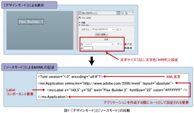 Webデザイナーの方は、XHTMLをご存じだと思いますが、MXMLもXHTMLと同様のマークアップ言語ですので、すぐに内容を理解することができると思います。