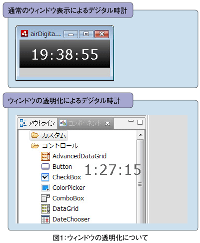AIRアプリケーションでも、このような透明化されたウィンドウのアプリケーションを作成することができます(図1)。