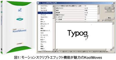 意外に知られていないのですが、FlashのファイルフォーマットであるSWFは仕様が公開されており、数多くのサードパーティー製のFlash作成ソフトも存在します。その中に「モーションタイポグラフィ」や「トランジション」を得意としたソフトウエアがあり、今回は「KoolMoves 6(http://powerx.jp/product/catalog/creation/xkm6/)」というアプリケーションのモーションスクリプトエフェクトという便利な機能を解説していきます。