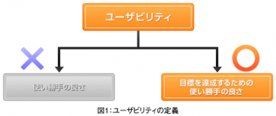 つまり、ユーザビリティとは、ただ「使いやすさ」「使い勝手のよさ」と言う意味ではなく、「ユーザが目標を達成するための使いやすさ」「ユーザが目標を達成するための使い勝手のよさ」であり、Webでのユーザビリティとは、システム、Webサイト、もしくはそのパーツが「ユーザにとってわかりやすく、スムーズに目標達成でき、満足できるものかどうか」と定義づけることができます。