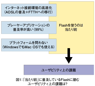 このように、すでに広く普及し「当たり前」のように使われているFlashですが、あらためて「ユーザビリティ」という観点で見つめ直すと、いろいろな課題が見えてくるのも事実です。本連載では、この「ユーザビリティ」という切り口を軸に、エンドユーザーにとって役立つFlashアプリケーションのあり方を考えていきたいと思います。