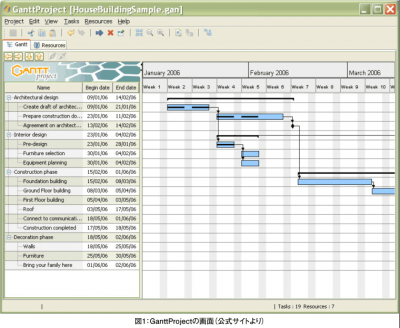GanttProjectは、Java言語(Swing)を用いて作られている、オープンソースのデスクトップアプリケーションです。原稿執筆時点(2008年9月現在)での最新バージョンは2.0.7です。
