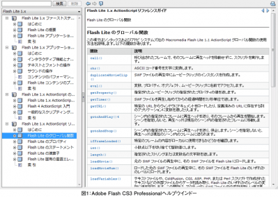 今回はこのように使用頻度の高いスクリプトを主に解説していきますが、そのほかの細かいスクリプトなどについては、図1のようにFlashのヘルプを見てみると良いでしょう。Flash Lite 1.1の場合、数が少なく単純なスクリプトが多いため、十分に活用できるはずです。