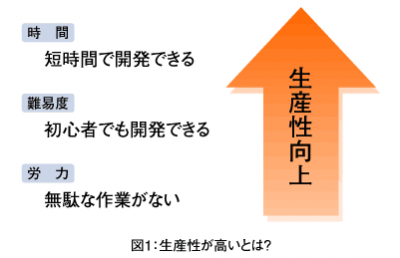 では、ここでシステム開発における生産性を「時間」「難易度」「労力」の3つの視点から考えてみましょう。