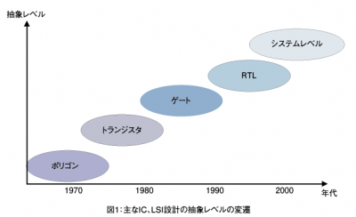 現在のRTLよりも高い抽象レベルはシステムレベル、もしくはESL(Electronic System Level:電子システムレベル)と呼ばれており、このシステムレベル設計への移行が期待されています。