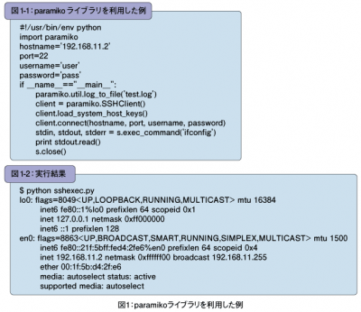 paramikoライブラリの利用例を図1-1に、実行結果を図1-2に示します。