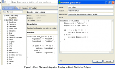 Another great feature of the code gallery idea is that Zend has a code gallery of its own that you can access at any time and you can also submit your own code for possible inclusion into the global gallery.
