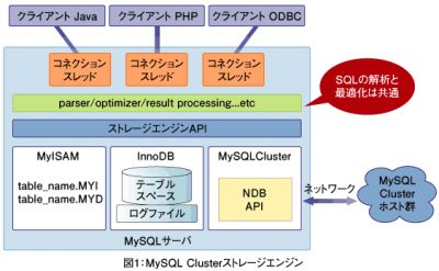 そのため、新規にWebアプリケーションを開発する場合などの比較的小規模なシステムでは使う機会はほとんどないでしょう。ただし、そのようなシステムでも将来的にトラフィックが増えてきた場合、アプリケーションを変更することなくストレージエンジンをMySQL Clusterに入れ替えるだけで、システムをスケールアウトさせることが可能です。
