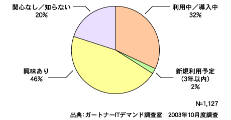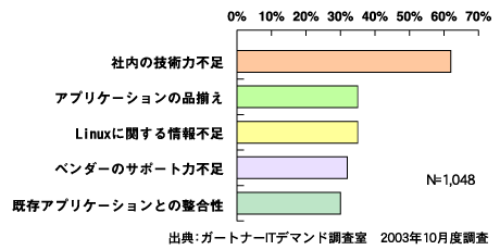 ![]() 図2:2003年10月に国内企業ユーザー約1,000社を対象としたLinux利用状況 |