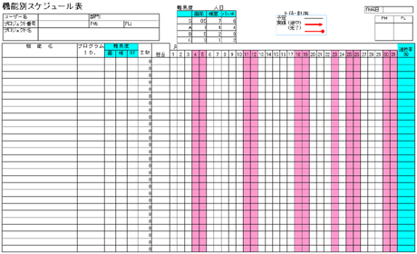 | 機能別スケジュール表 | ||||||||||||||||||||