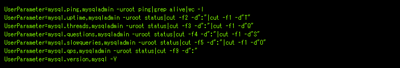 MySQLの監視を行うためには、/etc/zabbix/zabbix_agent.confの一番最後に記述されている、以下の行のコメントアウトを外します。 なお、この設定ではMySQLのrootユーザにはパスワードが設定されていないことを前提としています。 設定を有効にするために、以下のコマンドを実行してZABBIXエージェントを再起動します。