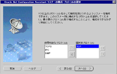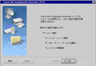 「スタート」->「プログラム」->「Oracle .OracleDb10g_home1」->「コンフィグレーションおよび移行ツール」->「Net Configuration Assistant」