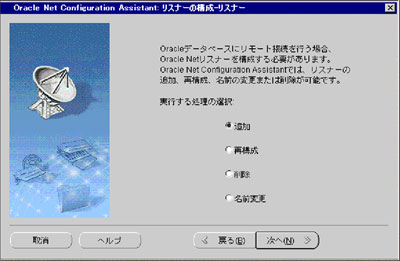 1.Welcome画面が表示されますので、「リスナー構成」を選択し、「次へ」をクリックします。