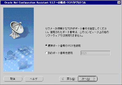 5.通信ポートの番号を入力する画面が表示されます。デフォルトの「1521」を使用しますので、そのまま「次へ」をクリックします。