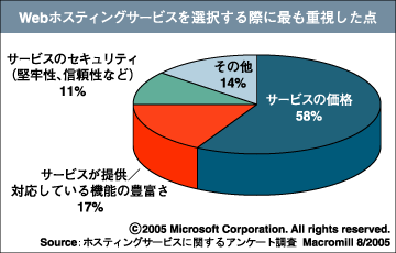 同社が行った調査によると、インターネットサイトの実に86%がホスティングサービスを利用しており、ホスティング利用者の60%が一般消費者であるという。趣味やアフィリエイト、週末企業などで一般利用者の需要が拡大している。さらに、一般消費者の70%が1000円以下のサービスを利用しており、ホスティングサービスを選択する際に、もっとも重視した点が価格であった。