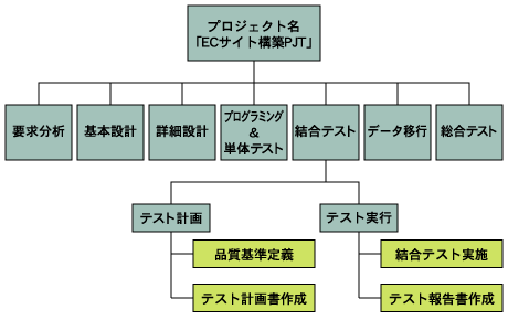 ![]() 図1:WBSの例(結合テスト作業) |