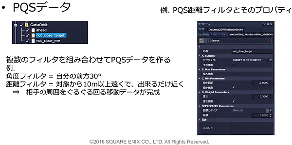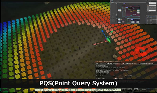もちろん、このような方法がこれまでにもなかったわけではありません。例えば「Killzone」(Guerrilla Games, 2005)では、すでに同様のシステムが実装されていました。しかし、ゲームエンジンの中でツールまで完備された形で実現したのは「CRYENGINE(CRYTEK)」 (2010, Tactical Point System)が初めてで、現在では「Unreal Engine 4」 (Epic Games)の「EQS(Environment Query System)」でも実装されています。スクウェア・エニックスでは「PQS(Point Query System)」として実装しています(図6)。