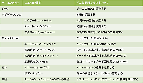 本連載では、現代における最新デジタルゲームの人工知能技術を紹介しました。本連載を数行でまとめれば、次のようになるでしょう。
