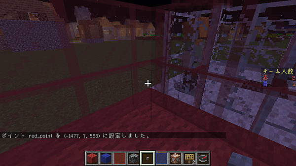/cspawn blue game1反対側の端にある赤チームのスポーン地点でも同様に以下のコマンドでスポーン地点を設定します。