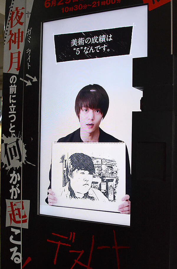 日本テレビ系ドラマ「デスノート」の放映に際し、東京・渋谷駅にデジタルサイネージを用いたユニークな広告が出されました。キャンペーンの概要は「ディスプレイの前に立つとデスノートのキャラクターである夜神 月とLが参加者をプロファイリングする」というものです。