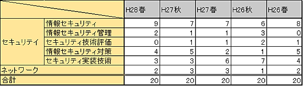 図5の中でも攻撃手法や暗号化、PKIなど「情報セキュリティ」分野からの出題が多くなっています。これらの分野は午前Ⅰでも出題されますが、午前Ⅱの方が「AESの段数」「CRLやOCSP」「ハッシュの衝突発見困難性」「SQLインジェクションを引き起こす入力データ」など、一歩踏み込んだ内容が出題されています。