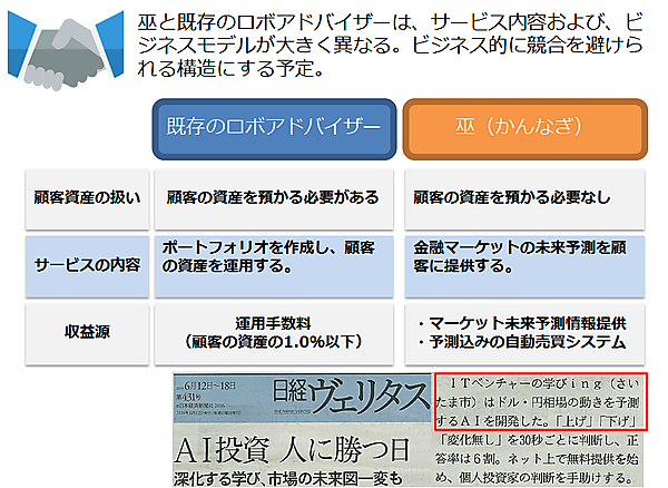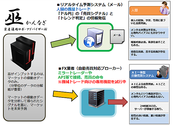 その第一弾としてスタートしたのがFX(ドル円)版「巫」です(図4)。FX版「巫」の展開の経緯については第2回で触れる予定ですが、現在では実証実験のフェーズを終え、商用サービス提供(株式会社ゴゴジャン運営「fx-on.com」)の段階に入っています。