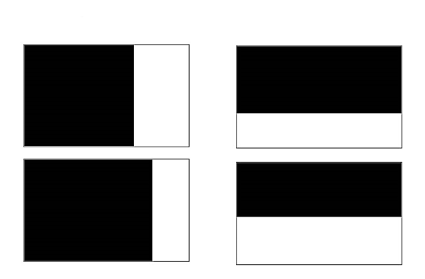 図1や図2のような実際の写真では分かりにくいかもしれないので、それぞれ図3のように単純化してみました。このようなイメージで構図を考えてもらえれば、安定して“良い構図の写真”が撮れるようになります。