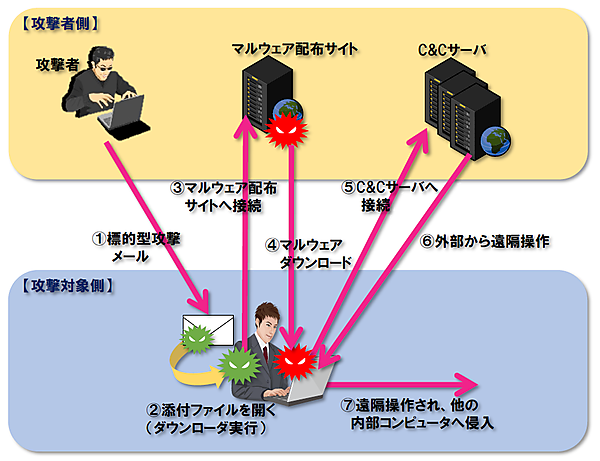 標的型攻撃の手口は、以下の通りです(図2)。