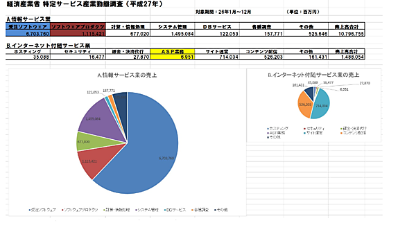 注目著しいインターネット付随サービスはどうでしょうか。サイト運営やコンテンツ配信などを含む全体の規模では情報サービス業の14%にまで成長してきましたが、「SIerの仕事を奪う」とされているASP業務はソフトウェアプロダクツに比べても0.6%しかなく、まだまだ発展途上だということが数字に出ています。
