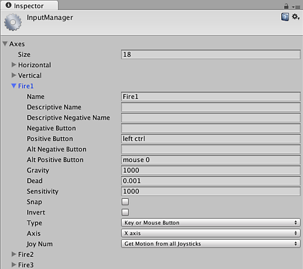 “Fire1”はUnity内部で定義されている値で、画面タップやコントローラの1ボタン(どの位置のボタンかはハードウェアによって異なる)、マウスの左クリックからの入力を識別できる共通の値である。つまり、このように記述するだけで画面タップとコントローラだけでなく、マウスにも対応した処理を一度に書けてしまうのだ。