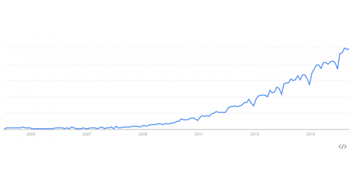次のGoogleトレンドによる分析グラフも、UXデザインの急成長を示しています。