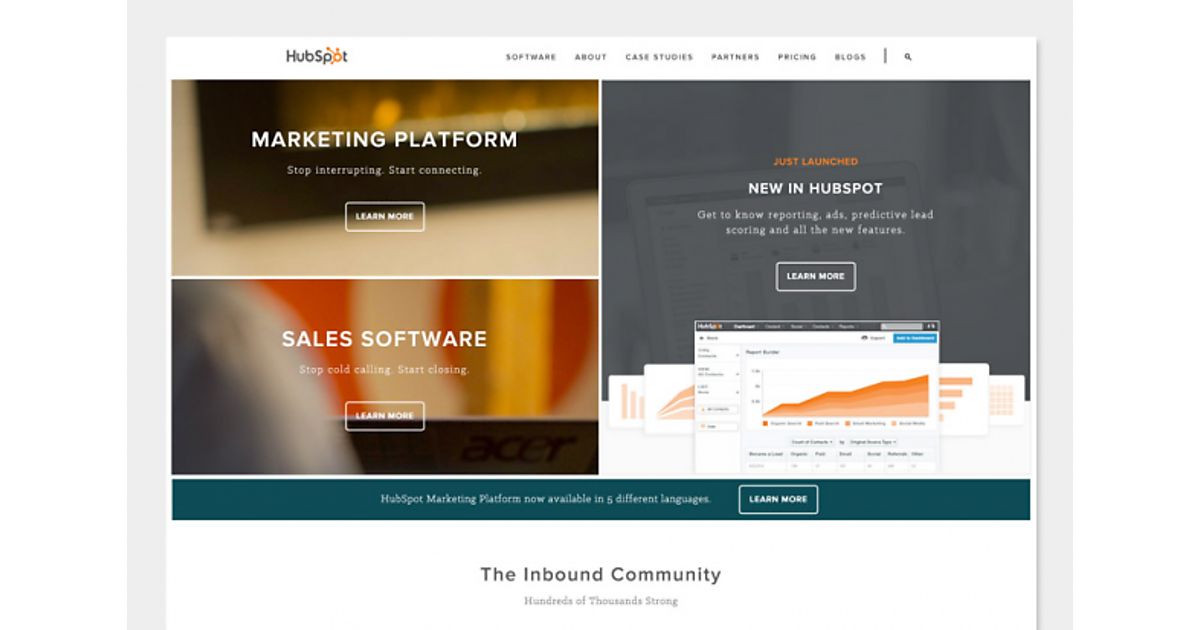 リニューアルしたHubSpotのWebサイトは、予定通り、年次イベント「INBOUND」の舞台において、同社の共同設立者たちによって、Webサイトのサポート対象である新製品や新機能の紹介とともに初公開されました。