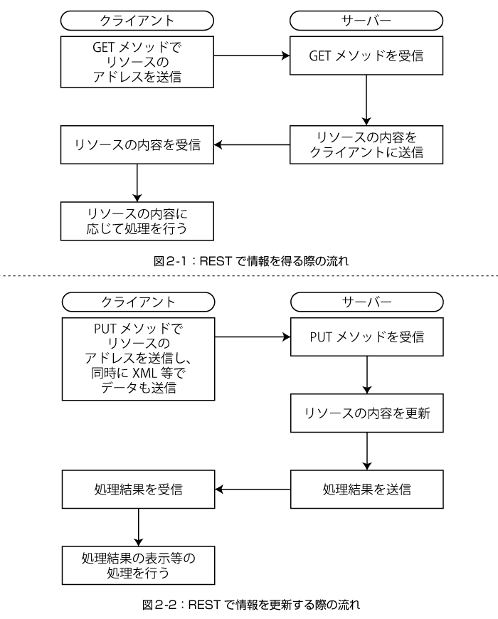 RESTは「REpresentational State Transfer」の略で、大まかに言えば、アドレス(URL)とHTTPのメソッド(GETなど)を組み合わせて、サーバー上のデータを操作する仕組みです。