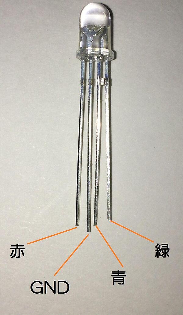 なお、今回は新たにRGBのカラーLEDを使用します。通常のLEDとは異なり、金属の足が4本あります。
