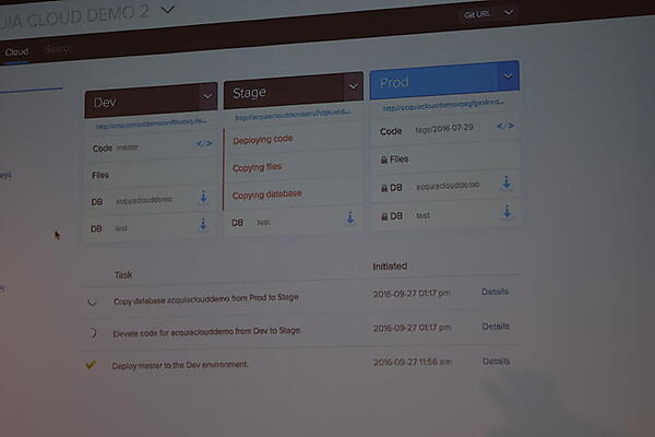 また、オーストラリア政府と共同開発したという「Acquia Cloud Platform」の紹介では、1年半ほどで既存のすべてのサイトをマイグレーションし100近くのサイトを統合管理できるようになり、ローンチまでの速度が向上した例などが発表された。