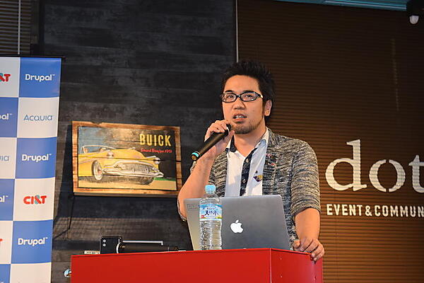 ここからは協賛企業セッションにうつり、最初にジェネロ株式会社の竹内 大志氏が登壇した。同社は、Drupalをビジネスの核とするAquia社がガートナーのマジック・クアドラントでTop 3のリーダーになったことに着目し、この勢いがDrupal 8でさらに加速されていくだろうとDrupalに注力し始めたという。DevShopというディストリビューションモデルによってサポートベンダーが出てきていたり、分野別のSaaSのようなビジネスが成り立っていく可能性があると、ビジネス面からDrupalを解析。「大企業向けと言われることが多いDrupalだが、中小のマーケットも開拓していきたい」と抱負を語った。