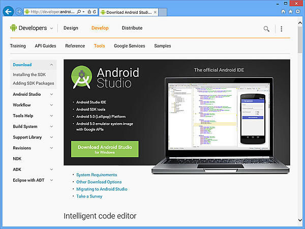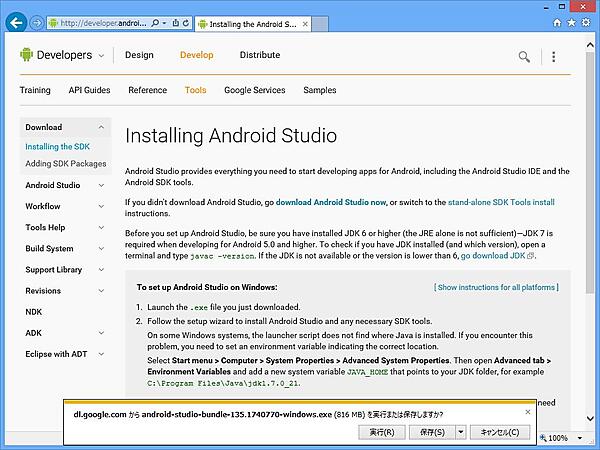 - http://developer.android.com/intl/ja/sdk/index.htmlと入力し、[Enter]キーを押す