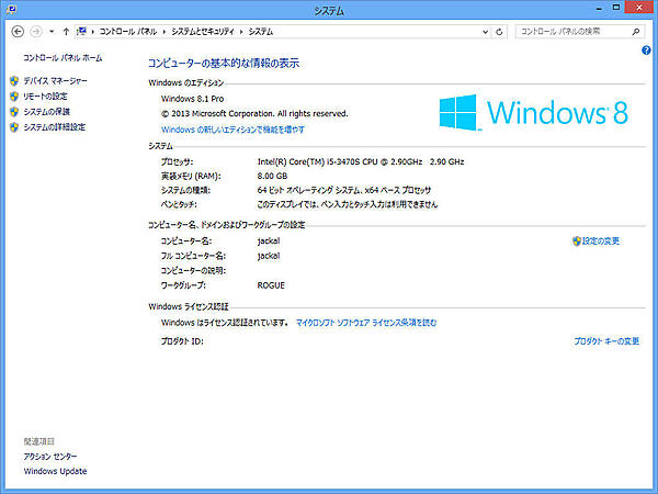 - コントロールパネルを開き、[システムとセキュリティ]→[システム]の順に選択