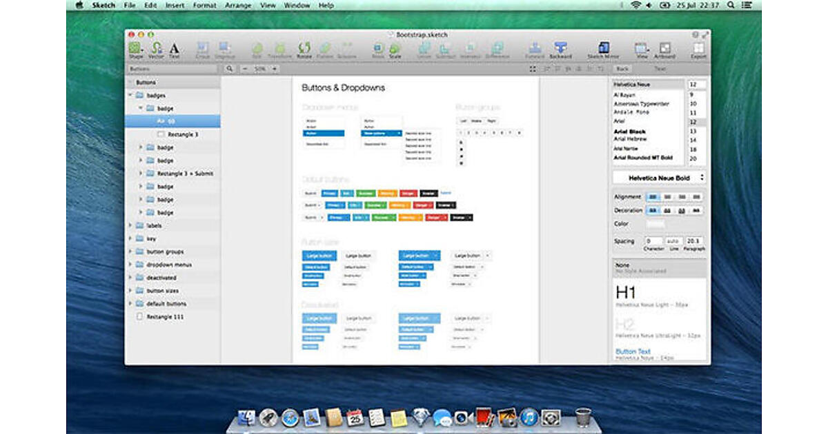 現在では、UIデザインツールの覇者はSketchです。Sketchは、WebとモバイルのUIデザインに特化したソフトウェアパッケージです。パタン、テクスチャ素材、ベクター素材などを組み合わせた編集は、Photoshopで行うよりも簡単です。