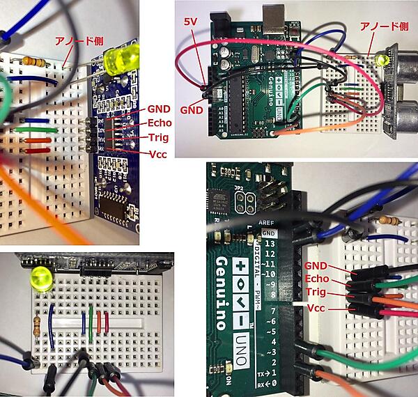 続いて、Arduino Unoの実機で動作を確認します。ただし、ここではParallax社製の超音波センサよりも安価な「HC-SR04」を使用します。