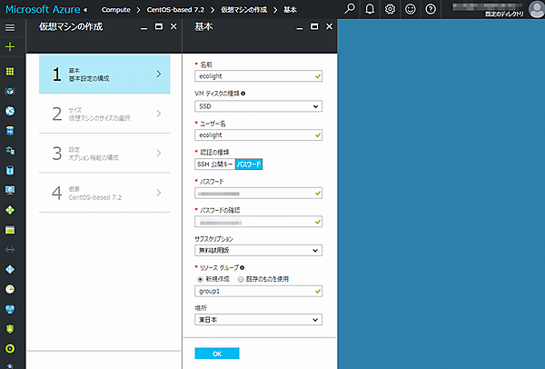 次に、仮想マシンの作成に必要な各種設定を行います(図39)。無料のお試し期間は特に課金されることはないはずなので、自由に設定してどんなものか確認しましょう。通信速度の問題があるため「場所」は国内をお勧めします。