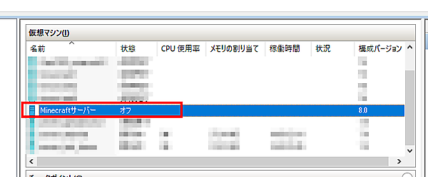 仮想マシンが作成されると、Hyper-Vマネージャーの仮想マシン一覧に作成した名前(Minecraftサーバー)の仮想マシンが追加されます(図17)。