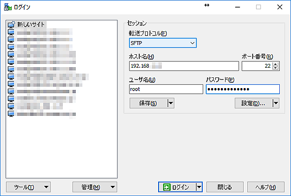 次に、確認したIPアドレスにFTPクライアントを用いて接続します(図31)。