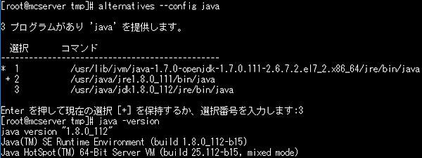 yum -y localinstall jdk-<version>-linux-x64.rpmインストールが完了したら、alternativesコマンドで使用するJavaを切り替えます。
