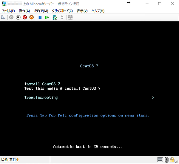 それではCentOSをインストールしましょう。仮想マシンの一覧から前項で作成した仮想マシンを選択し、右クリックメニューから「接続」を選択すると、仮想マシン用のコンソールが起動します(図18)。
