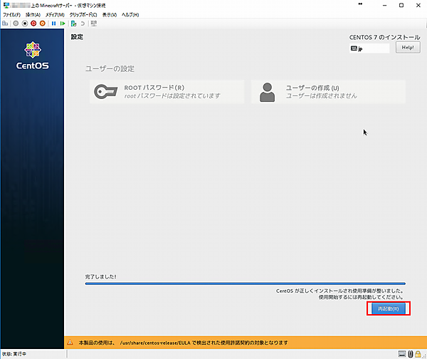 インストールが完了したら、「再起動」ボタンを押して再起動します(図26)。