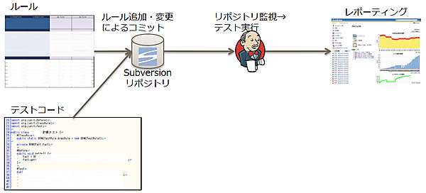 続いて、品質を高くできる点があります。近年の業務ルールは複雑化しているため、品質を保つのが難しかったり、コーディングミスをしてしまったりします。BRMSでは、見える化された実装によって複雑な仕様を見通しよく実装できます。また、プログラミング言語に対するテストと同様に、テストフレームワークを用いたテストも可能です。実際に筆者が携わったプロジェクトでは、かなりの数のテストケースをJUnitやSpockを用いて実現しました。テストコードにしておくことで、Jenkinsのようなツールを用いてCIをしたり、容易に回帰テストをしたりできるようになりますので、仕様の変更や追加時にも品質を保ったまま実現できるようになります。