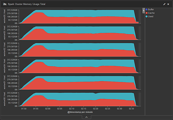 ここでは、Sparkへのメモリ割当量を806GB(クラスタ全体の約35%)に設定した状態で検証します。