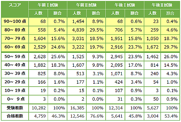 表3:IPA「情報セキュリティスペシャリスト試験 得点分布」から引用
