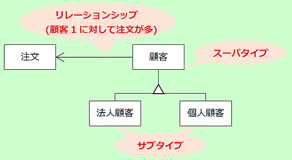 「関係=エンティティタイプ」と考えます。エンティティタイプ「顧客」の関係名は「顧客」です。